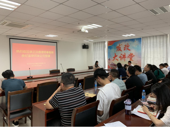 為完善現(xiàn)代企業(yè)制度、推進(jìn)公司治理現(xiàn)代化,提高公司合法合規(guī)經(jīng)營能力,有效規(guī)避經(jīng)營管理風(fēng)險,全面提升公司治理效能。5月30日下午,市農(nóng)發(fā)投公司邀請了求正沃德律師事務(wù)所余紀(jì)富律師為全體干職工(共70余人)進(jìn)行《公司治理法律實(shí)務(wù)》專題培訓(xùn)講座。