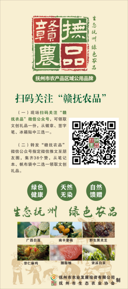 在活動(dòng)現(xiàn)場(chǎng)掃碼關(guān)注“贛撫農(nóng)品”微信公眾號(hào)和轉(zhuǎn)發(fā)“贛撫農(nóng)品”微信公眾號(hào)指定推文至朋友圈集齊38個(gè)贊,還可獲得徽章、簽字筆、冰箱貼、筆記本、帆布袋等精美的文創(chuàng)禮品。