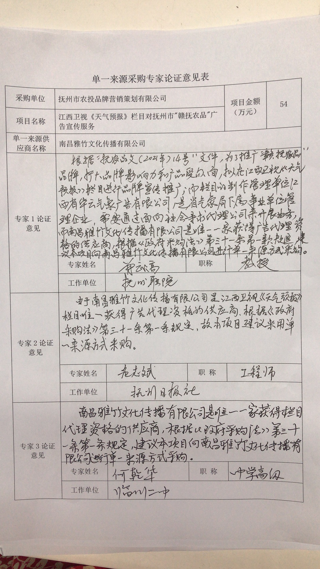 根據(jù)“撫農品文(2021年)14號”文件,為了推廣“贛撫農品”品牌,擴大品牌影響力和產品受眾面,擬在江西衛(wèi)視《天氣預報》欄目進行品牌宣傳推廣;而欄目的制作管理單位江西省華云氣象廣告有限公司,是省氣象局下屬的事業(yè)單位管理企業(yè),需要通過面向社會尋求代理公司來開展業(yè)務,而南昌雅竹文化傳播有限公司是唯一一家獲得廣告代理資格的供應商,根據(jù)《政府采購法》第三十一條第一條規(guī)定,建議本項目向南昌雅竹文化傳播有限公司進行單一來源方式采購;